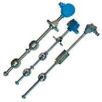 該液位送變送利用帶環(huán)形磁鋼的浮球隨液位升降,使主體管內(nèi)的干簧管吸合,將液位轉(zhuǎn)換成相應(yīng)的電阻輸出,該輸出電阻與本廠智能數(shù)顯儀表配套實(shí)現(xiàn)對液位的遙測、報(bào)警和控制。